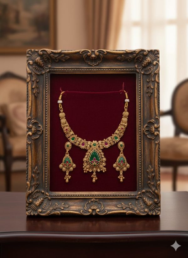 Yeh khubsurat artificial necklace premium quality material se bana hua hai, jo dekhne mein bilkul real jewellery jaisa lagta hai. Iska elegant design aapki personality ko aur bhi classy banata hai. Light weight hone ki wajah se ise pehna bahut comfortable hai aur long time tak use kiya ja sakta hai. Shaadi, party, festival ya kisi bhi special occasion ke liye yeh necklace perfect choice hai. Iski finishing smooth aur shine long-lasting hai, jo har outfit ke saath easily match ho jata hai.